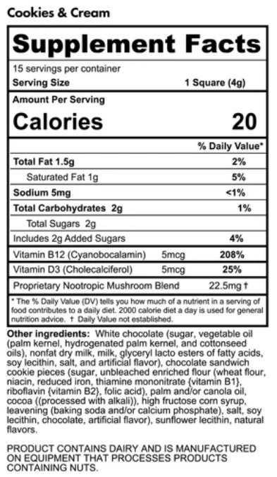 Cookies & Cream ingredients: